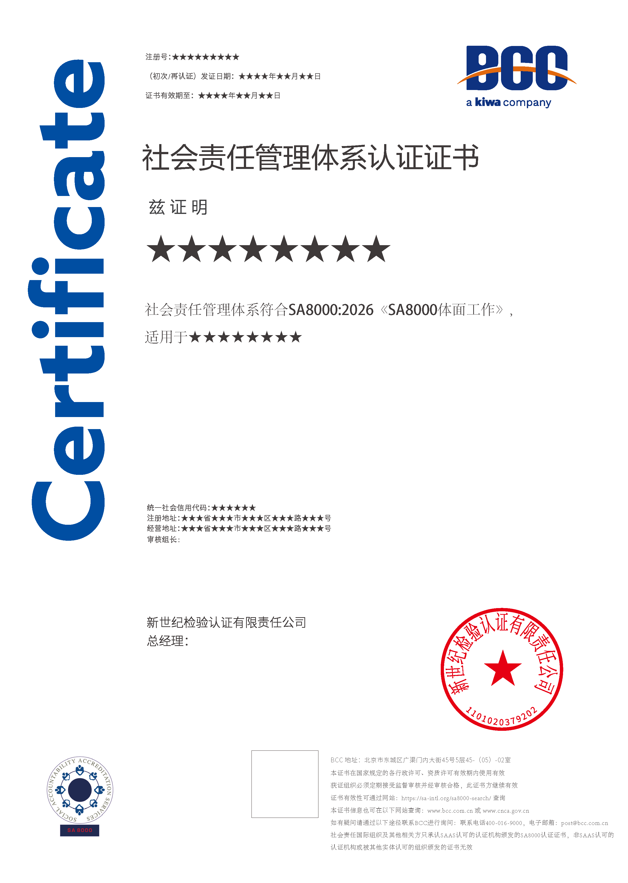 除此以外,申請社會責任管理體系認證的企業(yè)還需提交一些輔助資料,如管理手冊和程序文件(至少應提供認證標準中明確要求建立的程序文件)等。